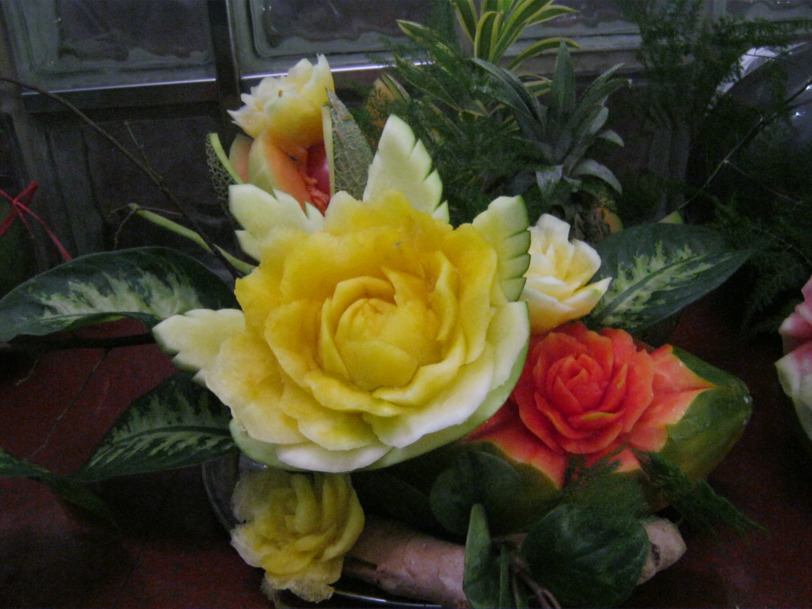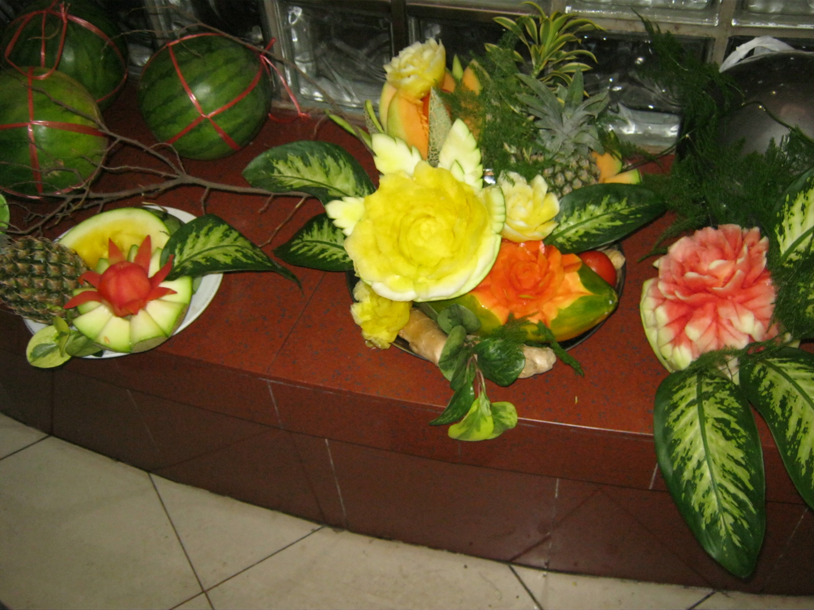 Fruit and vegetables carving adalah salah satu materi pendukung yang diberikan kepada mahasiswa untuk bisa membuat suatu kreasi yang menarik dengan cara membuat ukiran atau pahatan yang mempergunakan bahan dari buah dan sayur dan dapat dibentuk berbagai macam kreasi seperti : bermacam-macam bunga, unggas dan sebagainya disesuaikan dengan event atau acara tertentu atau momen-momen tertentu.