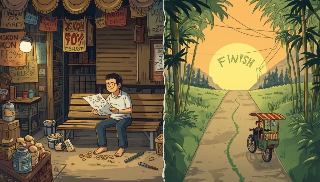 Jadi, mulai sekarang ubahlah sudut pandang Anda. Jangan tanyakan “bagaimana cara menjual lebih banyak?” Tanyakan “apa yang perlu saya pelajari hari ini? Bagaimana saya harus beradaptasi? Apa bentuk pertumbuhan yang paling penting minggu ini?” Karena menjalankan bisnis adalah perjalanan panjang—dan hanya mereka yang mau belajar, beradaptasi, dan bertumbuh yang akan melihat garis finis.