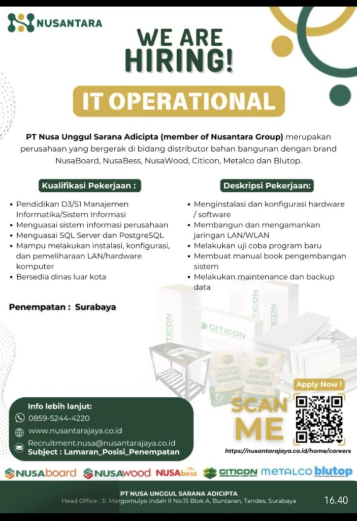 PT Nusa Unggul Sarana Adicipta (member of Nusantara Group) merupakan perusahaan yang bergerak di bidang distributor bahan bangunan dengan brand NusaBoard, NusaBess, NusaWood, Citicon, Metalco dan Blutop.