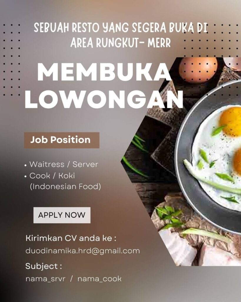WE ARE HIRING!Staff Service BunsikKualifikasiKirim CV & Berkas pendukung ke:0881-0265-87888Good AttitudeBisa MultitaskingLaki-laki (min 165 cm)Mempunyai kemauan belajar dan inisiatifMemiliki pengalaman dibidang FnB cepat saji (diutmakan)Disiplin waktu dan bertanggung jawabBerpenampilan rapi dan bersihMampu bekerja sama dengan timLibur 1 kali semingguPenempatan Tunjungan SurabayaFOLLOW MORE INFO@Seoulbunsik_
