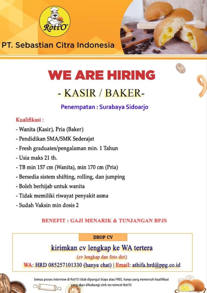 Semua proses interview di Roti’O tidak dipungut biaya atau FREE, hanya yang memenuhi kualifikasi yang akan dihubungi oleh recruiment Roti’O