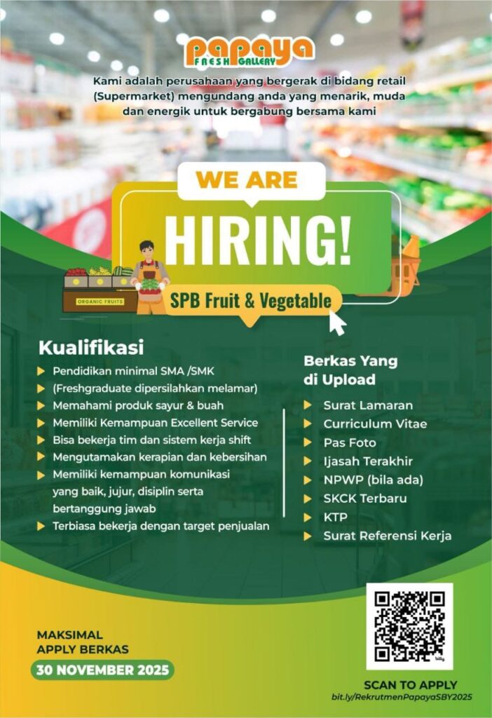 Kami adalah perusahaan yang bergerak di bidang retail (Supermarket) mengundang anda yang menarik, muda dan energik untuk bergabung bersama kami