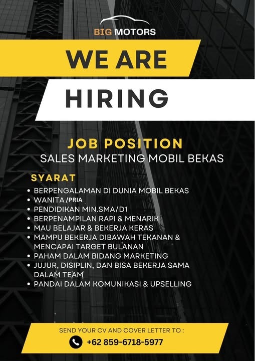 – Punya pengalaman bekerja di mall / sales menjadi nilai tambah