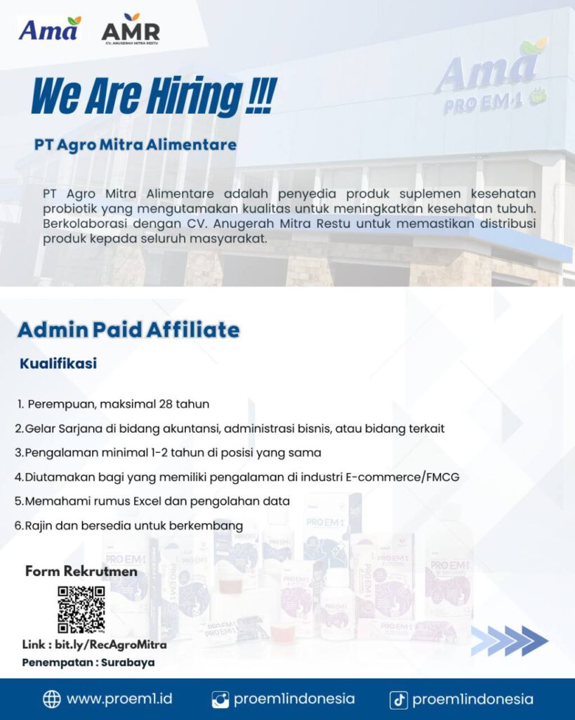PT Agro Mitra Alimentare adalah penyedia produk suplemen kesehatan probiotik yang mengutamakan kualitas untuk meningkatkan kesehatan tubuh. Berkolaborasi dengan CV. Anugerah Mitra Restu untuk memastikan distribusi produk kepada seluruh masyarakat.