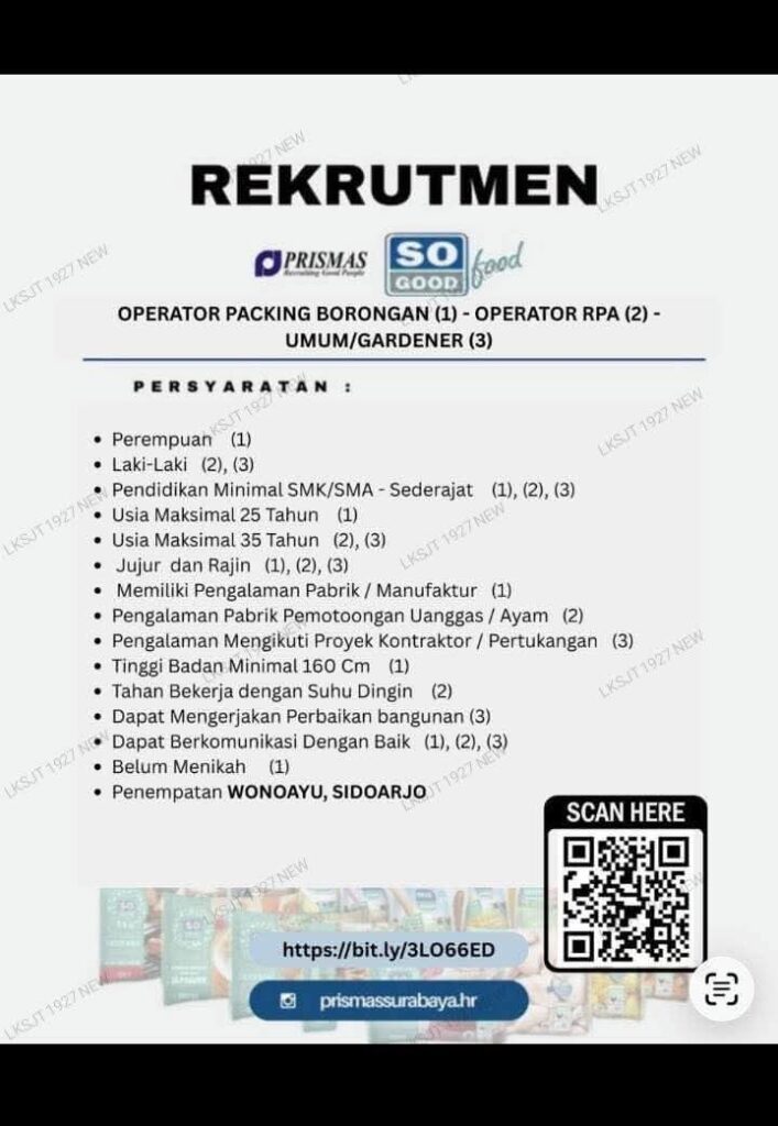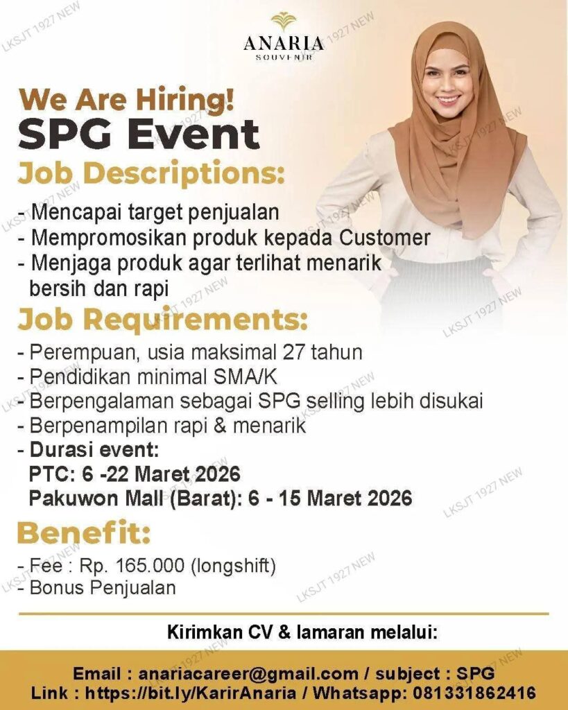 - Pendidikan min. SMA/K (terbuka untuk freshgraduate)