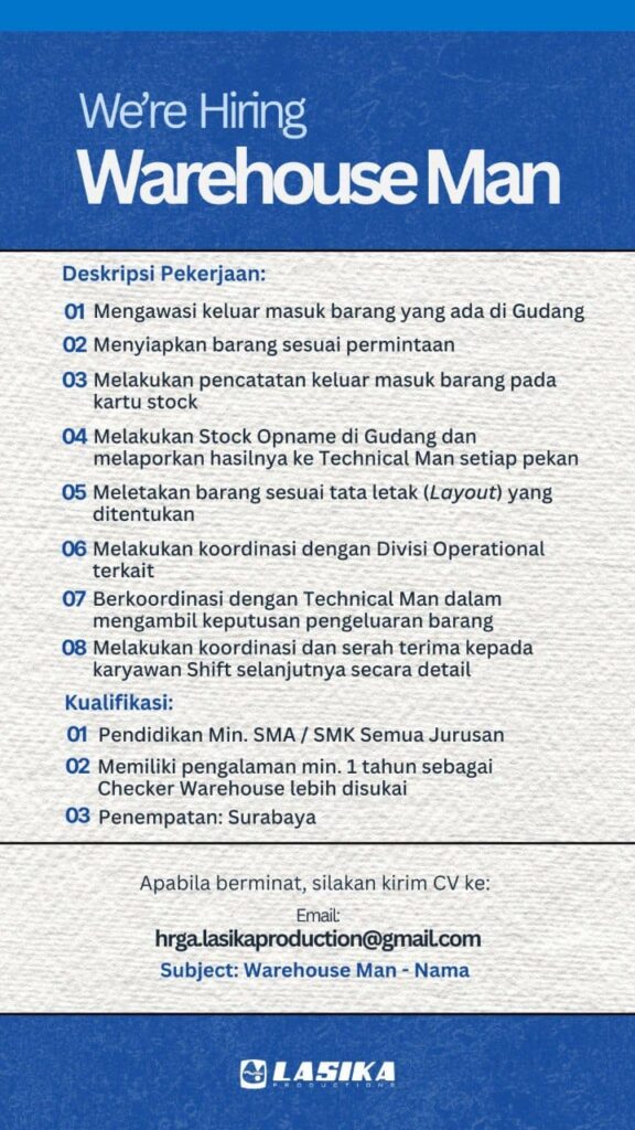 - TB min 157 cm (Wanita), min 170 cm (Pria)