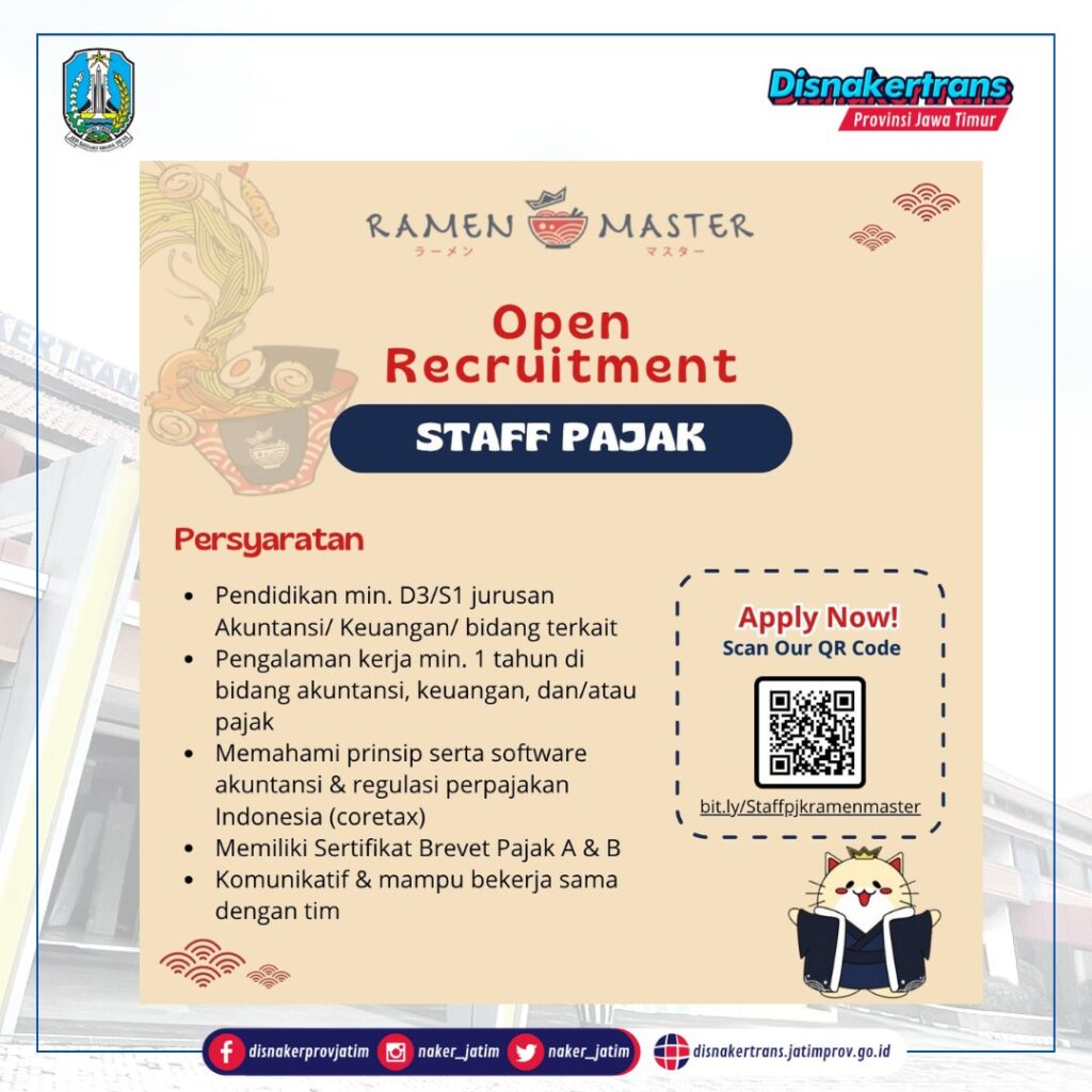 Apply Now! Scan Our QR Code bit.ly/Staffpjkramenmaster