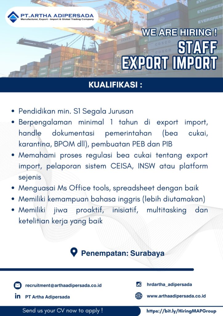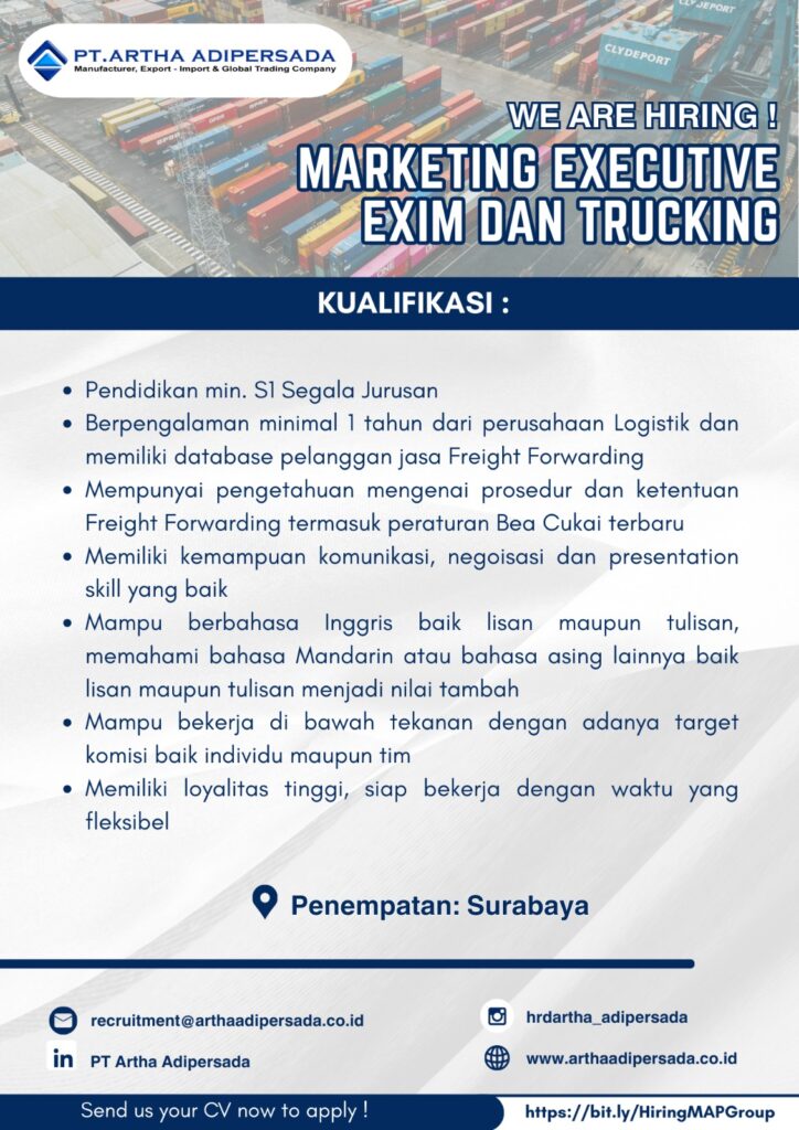 MARKETING EXECUTIVE EXIM DAN TRUCKING KUALIFIKASI: