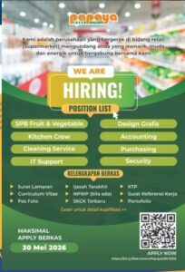 Kirimkan surat lamaran dan CV dalam format PDF, lengkap dengan pas foto 3×4 ke email :