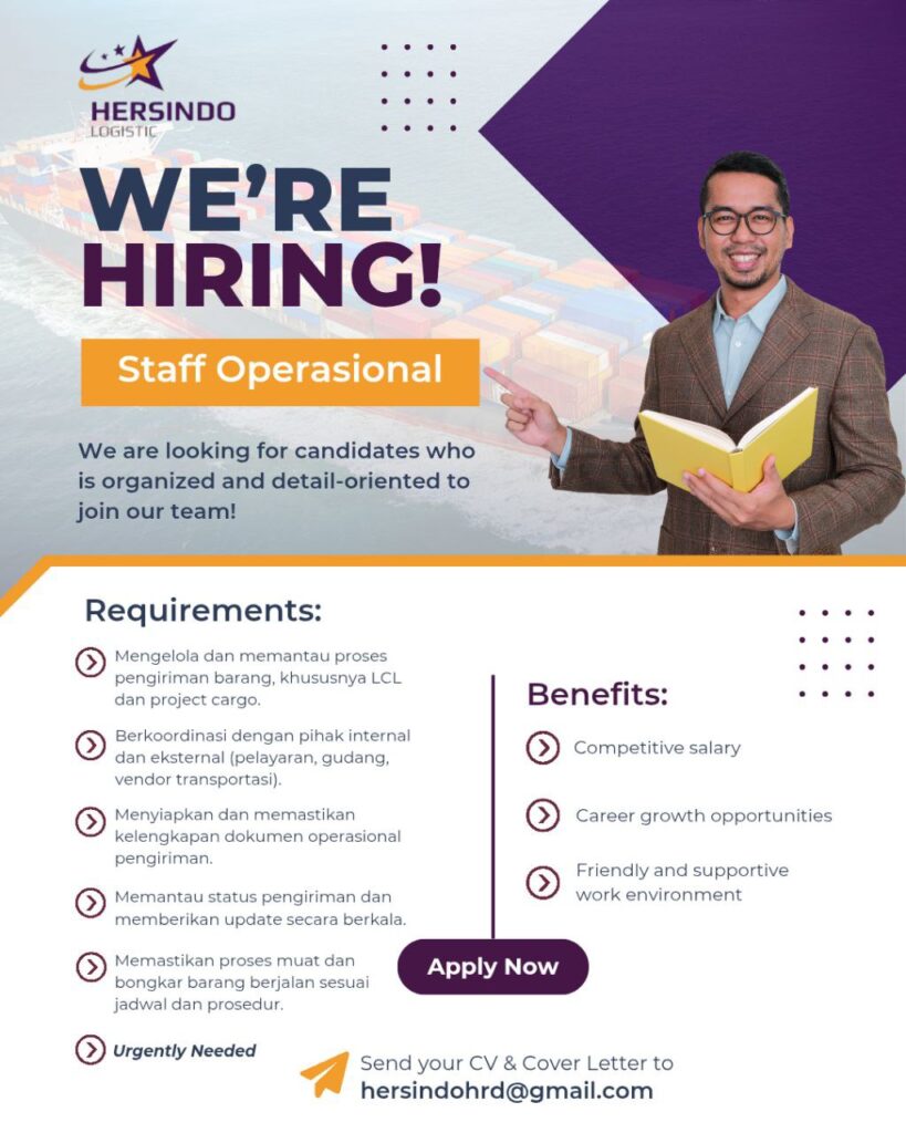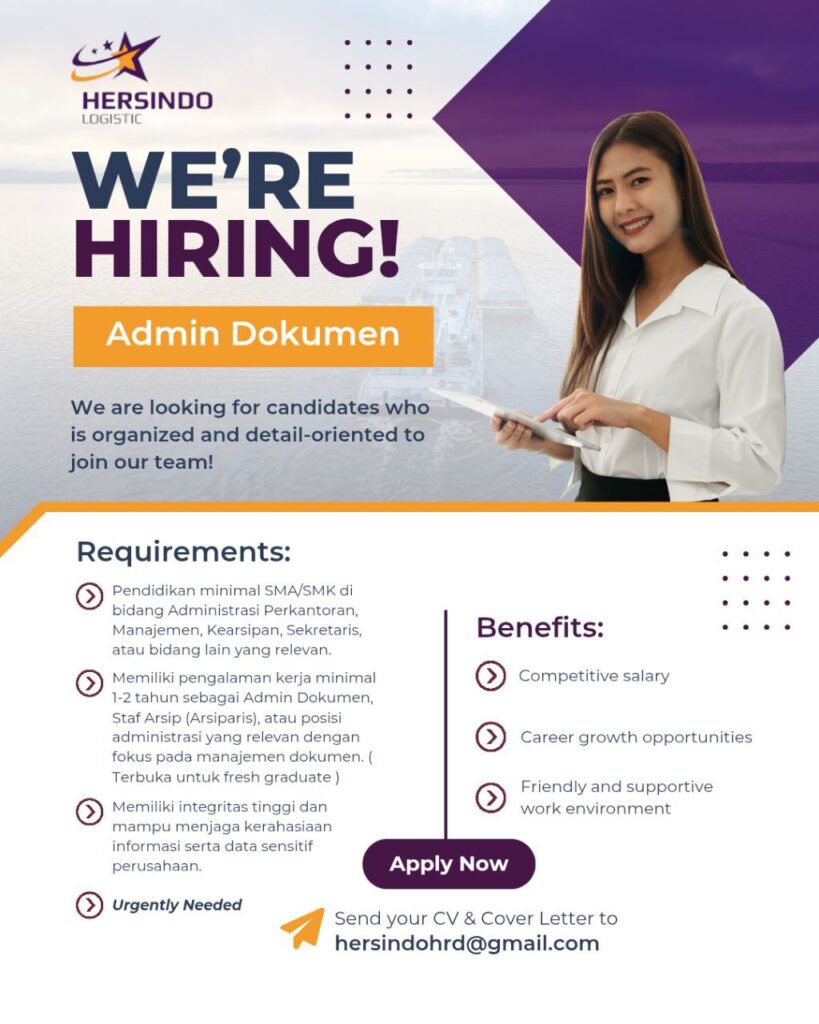 Kualifikasi: – Pria/wanita, usia maksimal 30 tahun – Pendidikan min. SMA/SMK – Full time position – Berintegritas, rajin, jujur, pekerja keras, disiplin, rapi, ramah, dapat bekerja dalam tim.