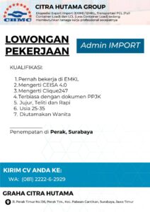 Ekspedisi Export Import (EXIM) / EMKL, Transportasi FCL (Full Container Load) dan LCL (Less Container Load) sedang membutuhkan tenaga kerja professional secepatnya