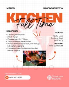 – Mampu bekerja cepat, rapih, dan menjaga kebersihan area kerja