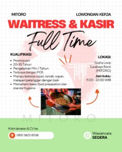 – Mampu bekerja cepat, ramah, sopan, melayani pelanggan dengan baik
