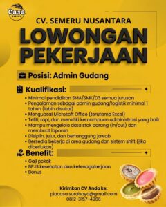 – Pengalaman sebagai admin gudang/logistik minimal 1 tahun (lebih disukai)