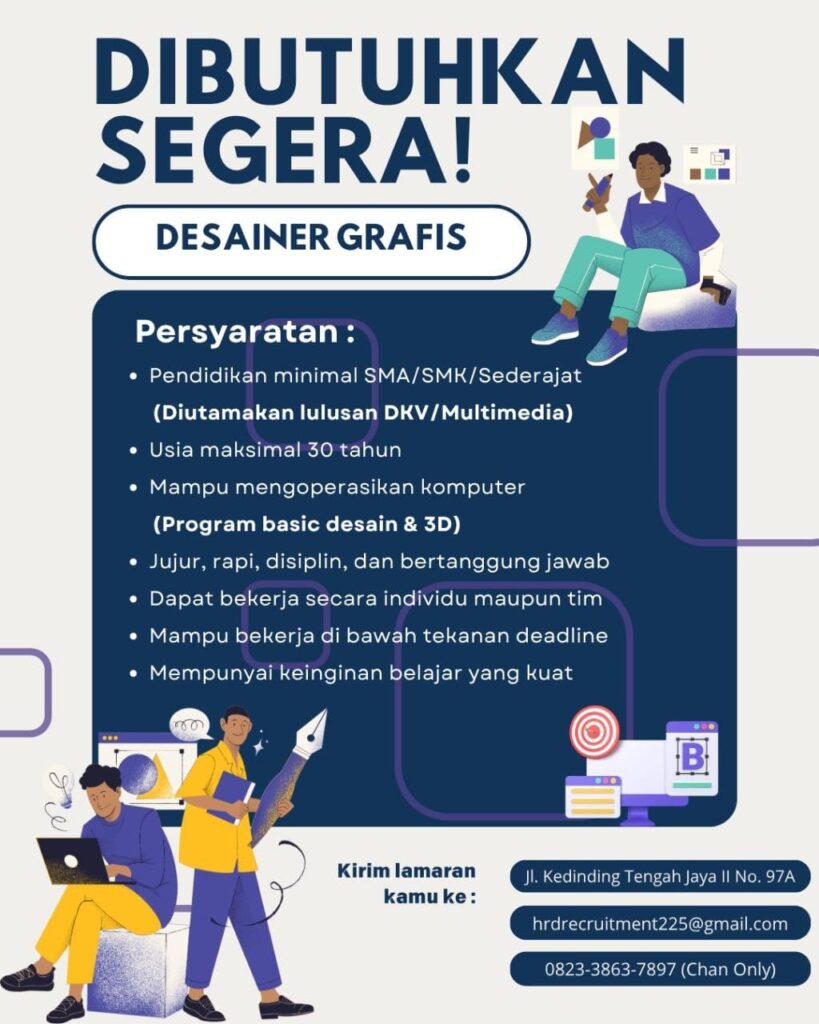 Pendidikan minimal SMA/SMK/Sederajat (Diutamakan lulusan DKV/Multimedia)