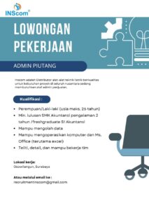 Inscom adalah Distributor alat-alat teknik listrik berkualitas untuk kebutuhan proyek di seluruh nusantara sedang membutuhkan staf admin penjualan.
