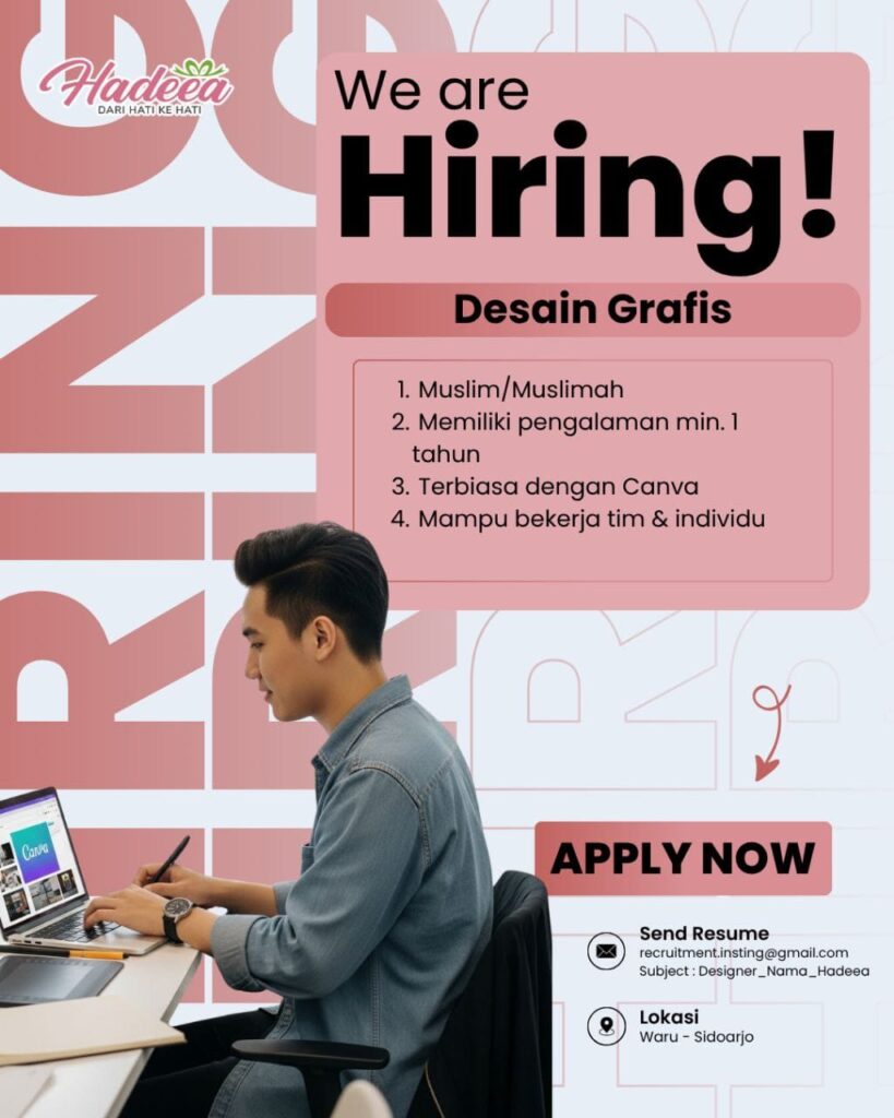 D WE ARE HIRING architectural and interior artwork ADMIN ACCOUNTING Wanita Usia Max. 30 Tahun Min. D1 Jurusan Accounting Detail, Teliti dan Terorganisir Sehat Jasmani Rohani Di Utamakan Yang Berpengalaman Tekun, Jujur & Bertanggung Jawab Persyaratan : Surat Lamaran Kerja & CV Foto Copy Ijazah, KTP Pas Foto 3×4 (2 Lembar) Surat Keterangan Domisili Lamaran dapat dikirim melalui Email: [email protected] atau Kirim Ke Jl. Sambikerep No. 37 RT. 12, Surabaya Untuk informasi lebih lanjut hubungi: 089530481719, Nurul