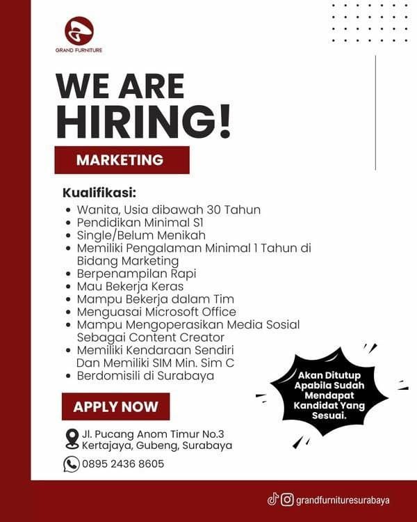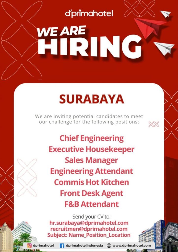 Pendidikan minimal SI (diutamakan dari jurusan Bahasa Inggris, Manajemen, Pariwisata atau Pendidikan).