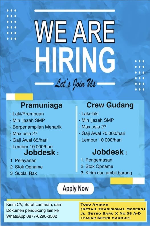 Kirim CV, Surat Lamaran, dan Dokumen pendukung lain ke WhatsApp 0877-6290-3502